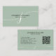 Cartão De Visita Código QR do Monograma de Script Verde de Sage Sim
