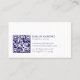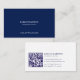 O elegante, simples e minimalista advogado de imigração cartão de visita apresenta tipografia personalizada azul e branca em um fundo azul e branco escuro. Código QR.