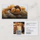 Cartões de visitas de padaria personalizados com foto e código QR, com na moda e design profissional ideais para padarias, pastelarias, casamentos e provedores de eventos, ou compradas de sobremesa destinadas a destacar qualidade. A frente mostra uma foto personalizada de seus produtos, emparelhada com um texto branco elegante, para uma sensação aconchegante e sofisticada. No verso, uma segunda foto cria o apelo visual com um código de QR digitalizável e ícones proeminentes das mídias sociais que encorajam a conexão de noivados e marcas online. Esse design equilibra charme e profissionalismo, fazer perfeito para empresas voltadas para novas ofertas, serviços personalizados e construção de uma forte presença local ou digital.