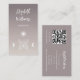 Uma borboleta tribal e luas num estilo místico de vassoura num gradiente de neutrais bege esticado. Seu nome em uma fonte elegante escrita à mão. Com um código qr digitalizável na parte de trás. Para estúdio de yoga, professor de yoga, estúdios de massagem, terapia de massagem, professor de meditação, curador de energia, conselheiro de saúde natural, spas ou bem-estar