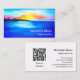 Código QR cartão de visita de praia tropical, com um design de oceano por sol. As letras brancas e pretas podem ser personalizadas com seu próprio texto. Você também adiciona suas próprias informações para um código QR verificável. Cheio de cores azuis e vermelhas, esta placa adiciona um toque abstrato moderno enquanto promove sua empresa.