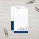 Cartões de visitas verticais modernos com seu nome e título nos campos de modelo frontal e personalizável para suas informações de contato, logotipo e código QR no verso. Cor azul escura e branca ou personalizada. Você pode alterar fontes e cores, mover e redimensionar elementos com a ferramenta design.