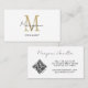 Crie o seu próprio Monograma QR Code Cartão de visita branco Dourado. Personalize este design com seu nome, título e informações de contato. Para personalizar este design, selecione o botão "Editar detalhes".