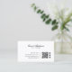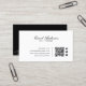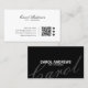 Design Elegante e clássico com toque pessoal Este design cartão de visita eterno apresenta um fundo branco limpo com um toque de sofisticação. A letra elegante do script adiciona um toque pessoal, enquanto a inclusão de um código QR e ícones de mídia social garante uma conexão fácil. O verso apresenta um design preto minimalista com um nome escrito à mão impressionante para um visual memorável.