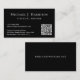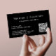 Cartão de visita de código QR preto profissional com seu nome em uma fonte elegante de serif branca e seu título e informações de contato em uma simples tipografia branca. Insira um endereço de URL para criar um código de QR digital verificável vinculado ao seu site, perfil de mídia social ou outra plataforma que mostre seu trabalho, permitindo que clientes e clientes explorem sua expertise. Personalize texto adicional na parte traseira ou deixe o vazio.