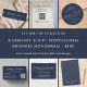 Cartão de visita profissional elegante e mínimo azul escuro com seu nome em um moderno roteiro branco-na moda e em sua empresa, título e informações de contato em tipografia branca simples e limpa. Introduza o endereço URL do Web site para criar um código QR pesquisável. No verso, personalize o texto adicional ou deixe o vazio.