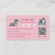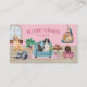 Um cartão de visita super fofo para festas de animais de estimação, cuidados para animais de estimação, adoção de animais de estimação, hotéis para animais de estimação, caminhoneiros para cães, treinadores de cães, creches para cães e cachorros e veterinários. Fornalhas de aquarela suaves e únicas e elementos para animais de estimação que incluem um labrador, dachshund, cavaleiro arrogante charles spaniel, yorkie, coelho, estiramento de gato, cobaia e papagaio. Adicione o URL do seu site de negócios no verso do cartão que atualizará o código QR (ou exclua se não for necessário). Personalize seu nome e detalhes comerciais editando o modelo de texto. Os ícones das mídias sociais podem ser excluídos se não forem necessários - clique em personalizar/personalizar para fazer isso.