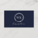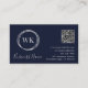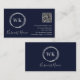 Cartão De Visita Código QR Silver do Marinho do Monograma Moderno