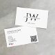 Design branco mínimo simples para sua pequena empresa, fonte elegante em fundo branco com seu monograma e código QR adicionado