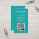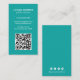Cartão de visita vertical moderno com um estilo simples e minimalista com o seu Código QR na frente e os ícones das mídias sociais no verso. Todos os elementos de design estão em branco sobre um fundo lacrimogêneo. Um design simples e mínimo que pode ser personalizado para qualquer profissional de negócios.