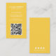 Cartão de visita vertical moderno com um estilo simples e minimalista com o seu Código QR na frente e os ícones das mídias sociais no verso. Todos os elementos de design estão em branco sobre um fundo amarelo. Um design simples e mínimo que pode ser personalizado para qualquer profissional de negócios.