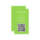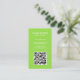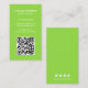 Cartão de visita vertical moderno com um estilo simples e minimalista com o seu Código QR na frente e os ícones das mídias sociais no verso. Todos os elementos de design estão em branco sobre um fundo de verde limão neon. Um design simples e mínimo que pode ser personalizado para qualquer profissional de negócios.