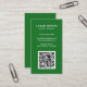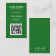Cartão de visita vertical moderno com um estilo simples e minimalista com o seu Código QR na frente e os ícones das mídias sociais no verso. Todos os elementos design estão em branco sobre um fundo verde. Um design simples e mínimo que pode ser personalizado para qualquer profissional de negócios.