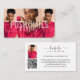 A frente deste elegante cartão de visita mostra um layout de colagem de três fotos com seu nome de negócios personalizado em tipografia em negrito, cobertura de opacidade de luz e elegantemente exibido em uma camada de caligrafia de na moda. O verso apresenta um layout limpo e mínimo para sua foto, nome comercial, detalhes de contato e um código QR para fácil acesso ao seu site, página de reserva ou mídia social. Totalmente personalizável, você pode editar o texto, as fontes, as cores e o plano de fundo para se adequar perfeitamente à sua identidade de marca. Projetada pela Moodthology Papery, esta versátil carta é perfeita para todas as indústrias, desde profissionais de beleza e bem-estar até consultores, treinadores, criativos, fotógrafos, planejadores de eventos, agentes imobiliários e além. Um design moderno e sofisticado que dá uma impressão duradoura.