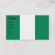 Faça uma impressão duradoura com um cartão de visita que orgulhosamente ostenta a bandeira da Nigéria! Esta cartão de visita impressionante é uma combinação perfeita de profissionalismo e patriotismo. A vibrante bandeira nigeriana verde e branca está lindamente incorporada na design, fazer este cartão não só como forma de compartilhar suas informações de contato, mas também uma representação significativa do orgulho e da herança cultural nigerianos. Quer você esteja trabalhando em rede, participando de eventos ou promovendo seus negócios, este cartão de visita da Nigéria é a escolha ideal. Seu design elegante e impressão de alta qualidade garantem que ele se destaca, fazer uma maneira memorável de se conectar a clientes potenciais, parceiros ou colaboradores. Impresso no estoque de cartão premium, este cartão de visita oferece durabilidade e estilo. A ousada design de bandeira garante que ele pega o olho enquanto mantém uma aparência profissional, fazer-a perfeita para qualquer um que queira exibir suas raízes nigerianas enquanto mantém uma aparência elegante e orientada a negócios. Bandeira da Nigéria Cartão de visita, Cartão Profissional Patriótico, Cartão de visita à Nigéria, Ferramenta Funcional e Decorativa de Rede, Presente para Entusiastas do Patrimônio Nigeriano, Design de Bandeira da Nigéria Vibrante, Símbolo de Identidade Cultural, Cartão de visita de Alta Qualidade, Bandeira da Nigéria para Redes Profissionais, Emblema Autêntico da Nigéria, Cartão de Contato Prático e Acessório, Cria na Nigéria, Branca e Elegenda Tela de Sinalizador de formigas, Ideal para redes e eventos empresariais, Flair de Nigéria distinto para uso profissional,