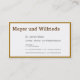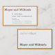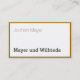Um lado impresso com todas as informações necessárias que um cartão de visita deve conter, um lado impresso com borda dourada e nome da empresa. Discreto e ainda assim único, claro na declaração, incomum sem ser extravagante, claro e objetivo. Para empresários com senso de estilo, postura clara e muitas informações. Azul escuro, dourado-marrom e branco são as cores predominantes com uma fonte grotesca sem floreios. Todos os tipos de papel são adequados.