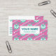 Cartões de visitas personalizáveis para treinadores de picleball. Com texto Pickleball: paciência antes do poder. Padrão rosa e verde minúsculo.