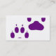 Cartão de visita com as patas roxas do filhote de cachorro. Deixe uma impressão durável ao anunciar seu negócio.