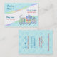 Adorável Cartão de visita apresenta um trem de brinquedo com um bebezinho feliz cavalgando nele. Acentos arco-íris e fundo aqua ligeiramente pontilhado. Padrão correspondente na parte traseira da placa. Texto em frente e verso pronto para personalizar com suas informações. Este cartão funcionaria bem para qualquer negócio relacionado a crianças, por exemplo, creche, babá ou boutique.