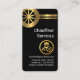 Um cobrir preto apresenta um design de carro de pneu dourado. Logo abaixo, está o nome comercial "Chauffeur Services" que você pode mudar ao lado de um logotipo de motorista dourado que você pode usar. Depois disso vem seu nome prestigioso e os detalhes de contato. No verso, no topo está o logotipo dourado seguido do seu nome prestigiado, dos detalhes de contato e de uma opção de legenda de slogan. Um cartão de excelente para o motorista.