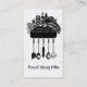 Aqui está uma design de comida excelente para um blog de comida. Um conjunto de comidas frescas fica acima das ferramentas de cozinhar de cozinha penduradas. Do lado dos restaurantes está um monte de cenouras frescas. Fotos de desenhar para o seu blog com este cartão de visita de estilo culinário.