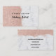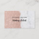 Um maquilhador moderno, cosmetologist, cartão de visita do salão de beleza com brushstrokes do brilho do ouro do rosa do rosa do falso em um fundo de mármore branco elegante