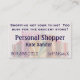 Sacos de compras e presentes são o tema deste cartão. O fundo frontal é fixo. Todos os textos frente e verso podem ser alterados ou removidos. O texto e a imagem no verso podem ser alterados ou removidos.