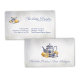 Cartão de visita de cinza de luz angustiada, elegante, de cor azul e branca, com um bule de chá e bule de chá elegante, com alguns limões amarelos frescos. Este exemplo é criado a ajustado de um compro ou colecionador antigo, mas pode ser tão charmoso para um café ou teahouse aconchegante, assim como estilistas de interiores, padarias artísticas, compras caseiras e jardins, ou até mesmo uma cama cheia de personagens e o café da manhã.