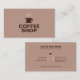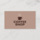 Um simples cartão de visita em tons castanhos com uma ilustração da xícara de café para comprar café, bar, restaurante, torradeira de café, compro de chá etc. Ele vem com informações personalizáveis decoradas por ícones e horas de abertura!