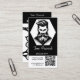 Essa lealdade e Cartão de visita oferecem uma primeira impressão profissional, elegante e de tendências. É composto como descrito abaixo: Frente: logotipo preto e branco com um homem barbudo com cabelo ondulado, seguido pelo nome pessoal/da sua empresa, número de telefone, detalhes de contato e um código QR para fácil acesso ao site. Back: Seu nome e tipo de negócio, 10 tesouras para selos de fidelidade. O último tem uma etiqueta "GRATUITA" que você também pode personalizar se preferir uma porcentagem de desconto, por exemplo.