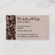 Os cartões de visitas de café Trendy e de café de calçada projetados com grãos de café e com textura de burlap parecem fundo em um design de tendências e na moda.