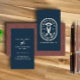 Logotipo clássico e da safra em azul e creme
