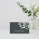 Apresente o compro da sua fábrica com sofisticação usando este cartão de identidade comercial, maravilhosamente projetado. O fundo da ardósia profunda cria um contraste impressionante para as fontes graciosas de serifa e script, enquanto sotaques sutis de ouro evocam um senso de elegância moderna. Uma ilustração delicada do eucalipto em verde-mudo e ouro, acrescentando um toque botânico fresco e eterno à sua imagem profissional. Este cartão é perfeito para floristas, compras de plantas e boutiques online que buscam atrair clientes com aparência limpa, minimalista e altamente profissional. Compartilhe facilmente os seus dados de contato, promova a sua empresa e deixe uma impressão memorável, seja em pessoa ou com as suas encomendas online.