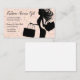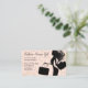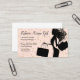 Comprando cartões de visitas de conselheiro de ciências e moda com um padrão de bolinhas e tendências e modelo em moda segurando sacos de compras no fundo. Projetado para uma equipe pessoal de alto nível que auxilia executivos ocupados com seu compro e seu horário de vida diário.