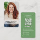 Um simples design apresenta uma foto de mídia social com código QR, um moderno e simples contemporâneo minimalista, com um logotipo de foto adicional, um site de e-mail para telefone de contato, com o Facebook Instagram Pinterest twitter, um profissional moderno de fotografia de na moda, uma digitalização digital limpa, um estilo elegante de design minimalista, com uma modelo gráfica ou fotografia, um estilo simples verde e branco.