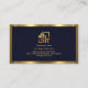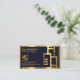 Um cobrir azul escuro é acentuado por um design de silhueta de ouro criativo na face direita do cartão. Uma borda dourada encapsula este design.
