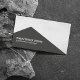 Modelo de cartão de negócios elegante com fundo de cinza de textura e padrão de triângulo de cinza escura. Design minimalista e único, perfeito para empresas relacionadas à construção/casa/design de interiores.