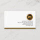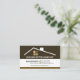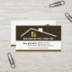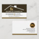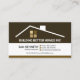 Uma camada marrom escura no topo da placa tem um design de telhado de construção com uma janela de tons marrons. O nome comercial está logo abaixo deste motivo. Na camada branca correspondente, uma linha vertical simples demarca seu nome prestigioso e o título do cargo à esquerda contra os detalhes de contato que são casas em seus respectivos botões. Uma legenda de slogan está listada perto da base da placa, você pode alterar a legenda para atender às suas necessidades de serviço. Uma faixa marrom encapsula a base. No verso, os detalhes estão na parede direita do cartão com um logotipo dourado em casa no topo, seguido do nome da empresa, dos detalhes de contato e de uma opção de slogan. Uma faixa marrom semelhante encapsula a base da placa. Este cartão seria excelente para temas de construção e construção. #handyman #constructing #buildingcontratante #homerepair #contratante