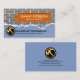 Cobrir com tijolo de cinza e design de gesso de parede azul. No topo, em uma camada marrom de corte, está seu nome prestigioso e seu título de trabalho. A camada de gesso azul abaixo tem um logotipo de martelo dourado que você pode usar com seu nome comercial e detalhes de contato ao lado.