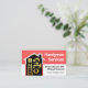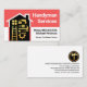 Design apresenta um quadro alto de montagem em um cobrir vermelho e branco em camadas. Dentro, o prédio é um conjunto de ferramentas manuais de ouro prestes a iniciar trabalhos de reparação. No topo está o nome comercial "Serviços de mão" que você pode alterar, seguido dos detalhes de contato e de uma opção de legenda de slogan. No verso, em um cobrir branco, no topo está um logotipo de martelo dourado que você pode usar, seguido do nome comercial, dos detalhes de contato e de uma legenda de slogan que você pode mudar. Este cartão seria excelente para empreiteiros de construção, para uso prático. #handyman #constuctionhandyman #homerepaircontratante #construcder #remodelder #handymantools #buildingcontratante #homerepair #interiordesign #generalcontratante #telhador #telhador #telhador #empreiteiro #zazzlemade