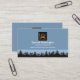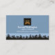 Uma camada azul é acentuada por uma paisagem criativa de horizonte de horizonte urbano perto da base do cartão.