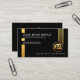 Um cobrir preto apresenta cinco linhas verticais falsas de ouro com uma faixa de ouro à esquerda. As áreas de corte na faixa dourada abrigam seu nome comercial, uma legenda de slogan que você pode mudar ao lado de seu nome prestigiado. Logo abaixo da linha vertical dourada está um logotipo da paisagem dourada que você pode usar com seus detalhes de contato. No verso, o logotipo das ferramentas manuais douradas está no topo. A isto segue-se o seu nome prestigiado, os seus dados de contato e uma opção de legenda de slogan para divulgar os seus serviços. Um cartão de na moda de excelente para empreiteiros de construção, para uso prático.