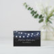 Fundo negro elegante e clássico com cordas românticas de luzes na frente e atrás desta moderna cartão de visita de tendências. Perfeito para um planejador de casamento ou evento, consultor, dj, restaurante, clube noturno ou negócio temático noturno.