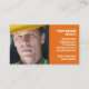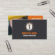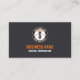 Cartões de visitas do contratante em cor laranja e cinza escura. Design com um logotipo comercial, suas informações de contato, um slogan ou qualquer texto personalizado e uma foto. Edite o texto e altere as cores para corresponder à sua marca de construção clicando no botão para editar a design.