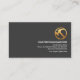 Na parte superior do cartão está o seu nome prestigioso e o seu cargo. Logo abaixo da linha do telhado está o nome comercial seguido de um logotipo de martelo dourado que você pode usar. Ao lado do logotipo estão os contatos e uma legenda de slogan para divulgar seus serviços.
