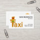 No verso, os detalhes estão na parede direita do cartão. No topo está o logotipo amarelo do táxi seguido pelo nome da empresa, seus detalhes de contato e uma opção de slogan.