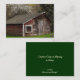 Este cênico cartão de troca de artistas plásticos apresenta uma cena rural com um velho galinheiro de madeira com conselho de celeiro vermelho e branco curvado ao redor da janela sobre um lindo gramado verde e uma árvore verde atrás. A macieira com flores brancas e cor-de-rosa nos diz que é primavera.