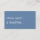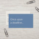 A modern, minimalist business card perfect for copywriters and freelance writers. The front features a soft blue background with the humorous phrase "Once upon a deadline..." in off-white text. The reverse has an off-white background with dark charcoal text and space for your contact details. All text on the card is fully editable.