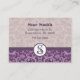 Cartões de visitas de Vintage Personalizada com Púrpura Suplente Suplente Insuave - Você escolhe a cor do cartão e a cor da fonte - clique em personalizar e veja o plano de fundo no Rococo Barrooque Floral Damask mudar à medida que você muda a cor do cartão! Divirta-se escolhendo suas cores personalizadas para fazer uma carta gentil!