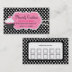 Cartão de visita bonito da padaria feito em um teste padrão de bolinhas preto e branco, com uma área de texto branca decorativa do rosa da borda, na parte dianteira. Os gráficos do divertimento do cupcake cor-de-rosa, branco, e preto decoram o lado esquerdo, do cartão. A parte traseira do cartão tem o texto adicional, com área do selo da lealdade do cliente. O texto é inteiramente customizável serir suas necessidades do negócio. Excelente para em casa padeiros demasiado.